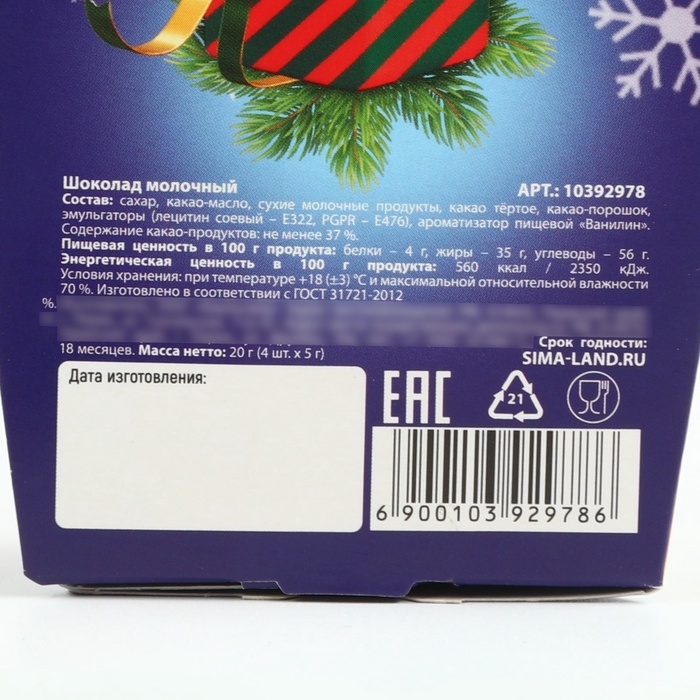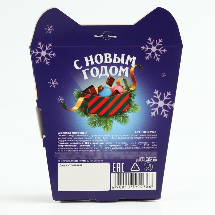 Новый год! Шоколад молочный «Енот», 5 гр х 4 шт