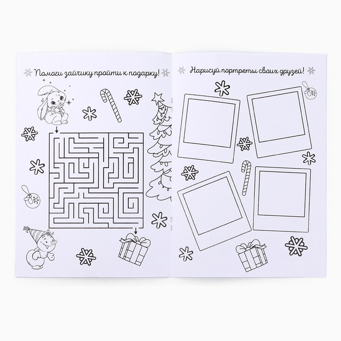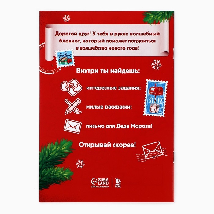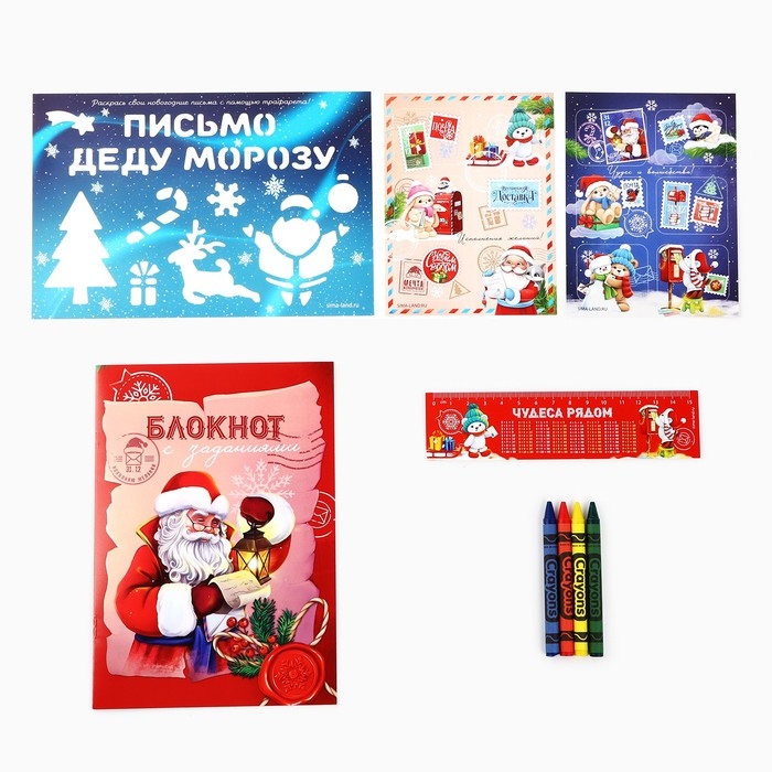 Подарочный набор новогодний блокнот-раскраска, трафареты, наклейки и восковые мелки «Зимняя почта»