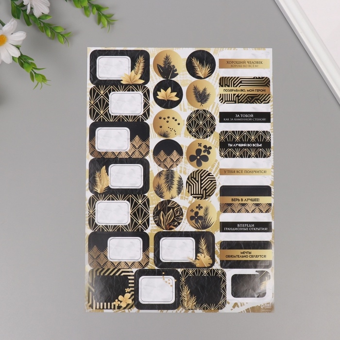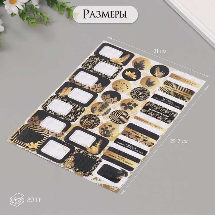 Наклейки на подарки "Чёрное золото" 21х29,7 см
