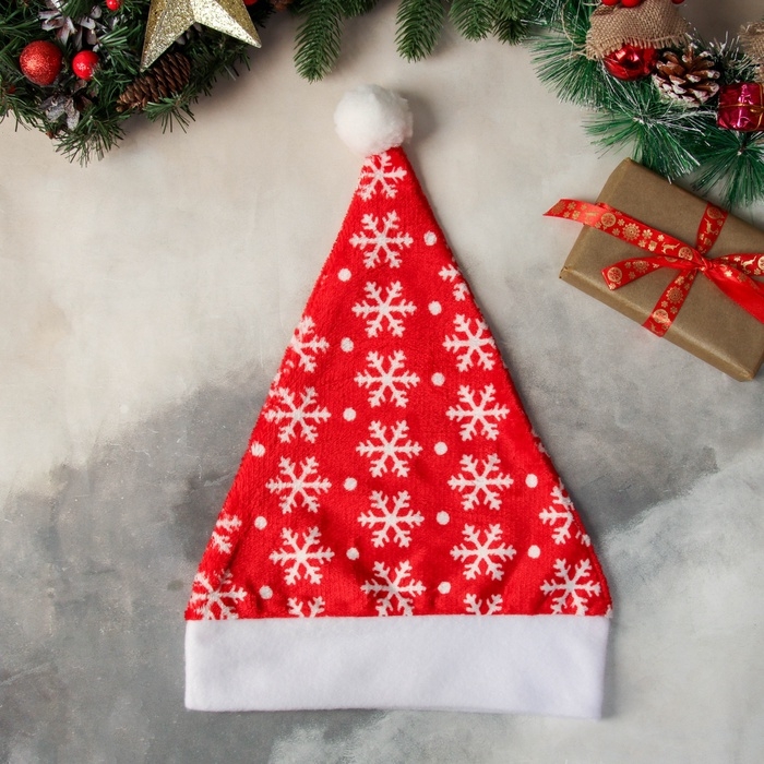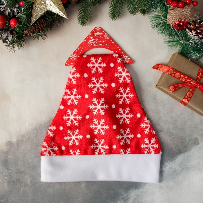 Колпак новогодний "Снежинки в горохе" 28х37 см, красный