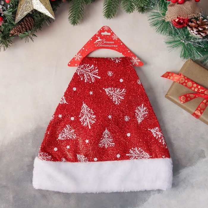 Колпак новогодний "Заснеженные ёлки" 30х37 см, красный