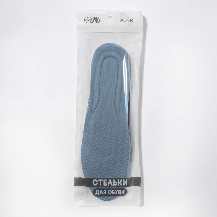 Стельки для обуви, универсальные, спортивные, р-р RU до 43 (р-р Пр-ля до 44), 27,5 см, пара, цвет тёмно-синий