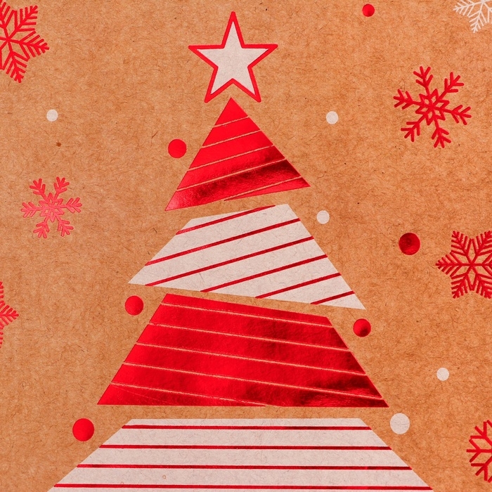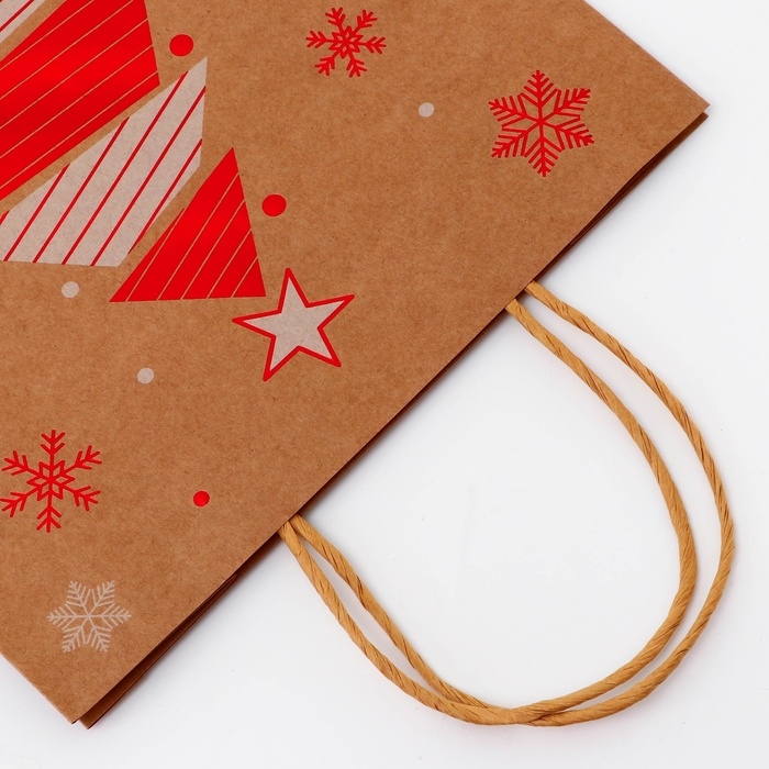 Пакет крафт новогодний 33 х 25 х 12 см - это стильное и функциональное решение для упаковки и транспортировки подарков в преддверии зимних праздников.