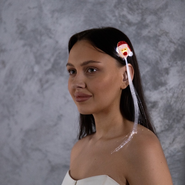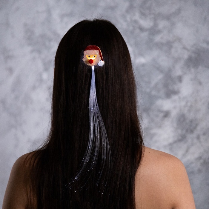 Заколка для волос светодиодная "Дед Мороз" 33x4.5 см, 1 LED, батарейки LR1130x2 (в комплекте), мерцание, свечение белое