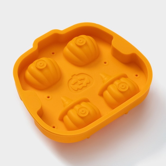 Форма для льда Доляна «Тыква», силикон, 4 ячейки, 15,4×14×4,5 см, цвет оранжевый