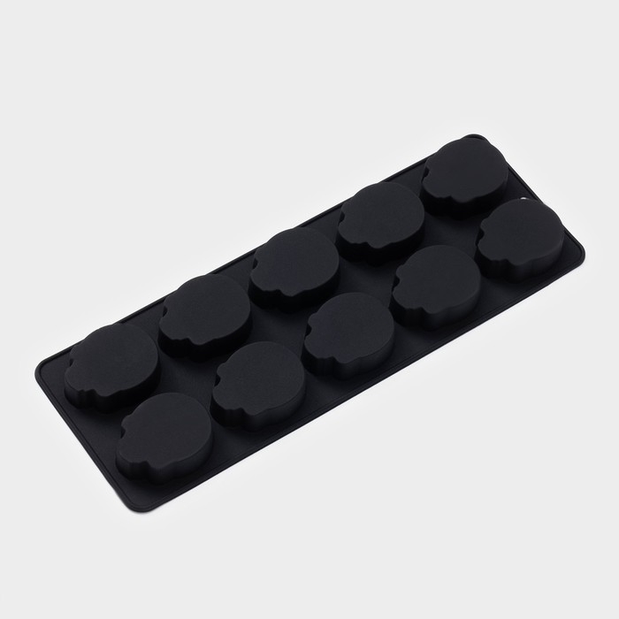 Форма для конфет и шоколада Доляна «Череп», силикон, 21,5×7,8×1,3 см, 10 ячеек (3,2×2,9 см), цвет чёрный