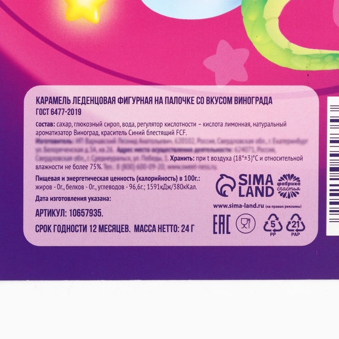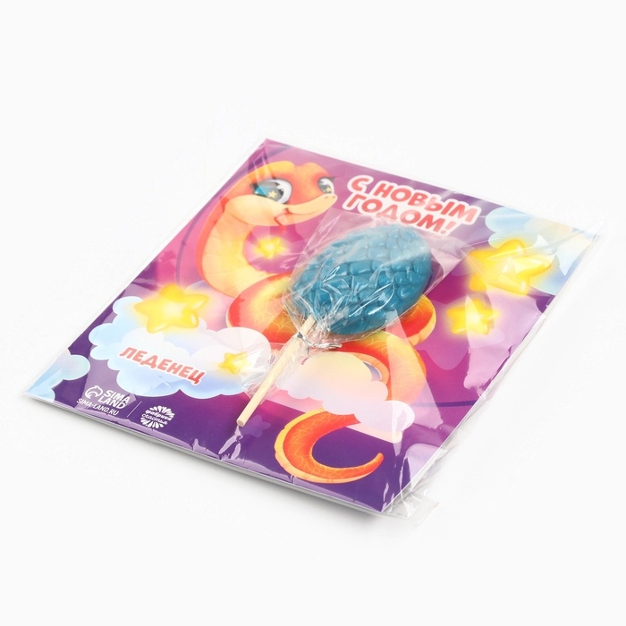 Леденец яйцо на палочке на открытке «С новым годом змейка», вкус виноград 24 г