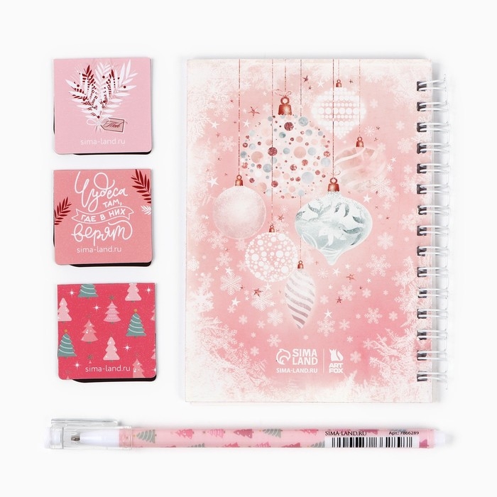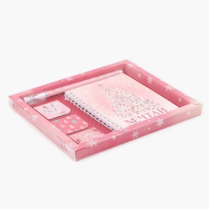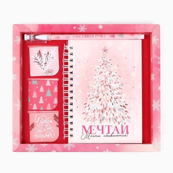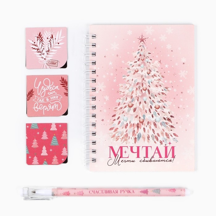 Подарочный набор новогодний блокнот на спирали, магнитные закладки 3 шт и ручка пластик «Мечтай! Мечты сбываются»