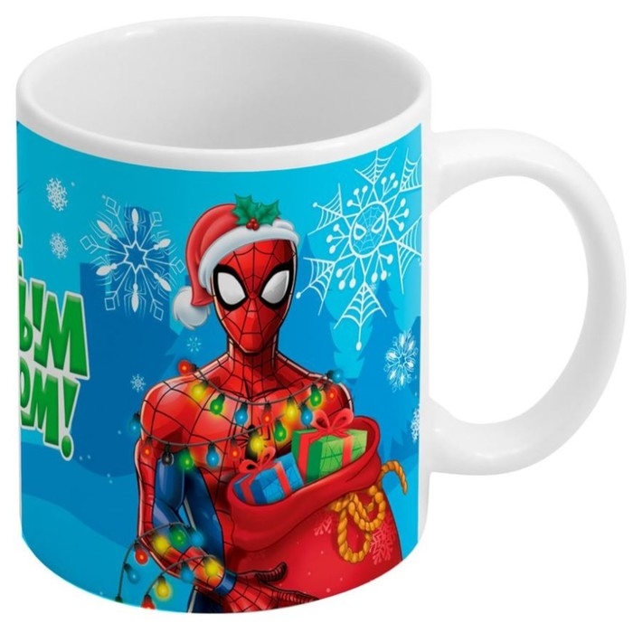 Новый год. Кружка керамическая сублимация, 320 мл, Человек-паук