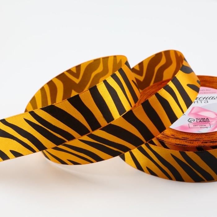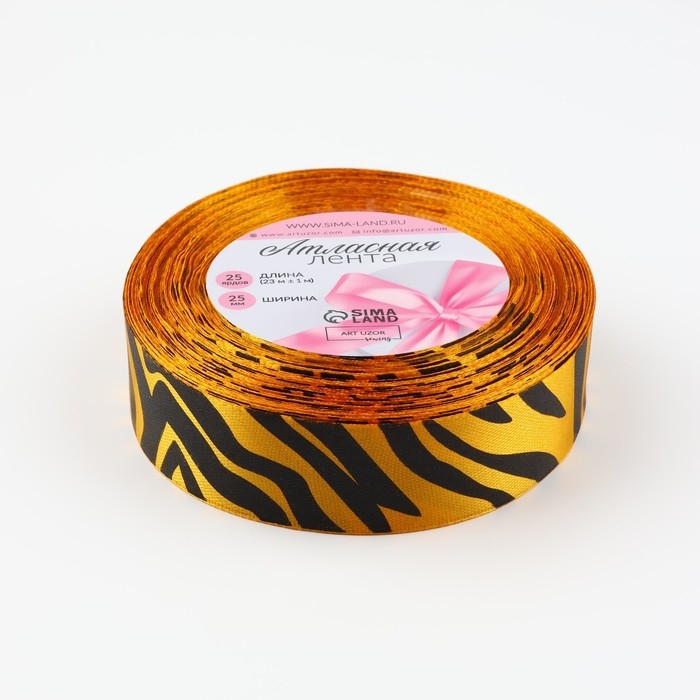 Лента атласная «Тигр», 25 мм × 23 ± 1 м, цвет оранжевый/чёрный №24