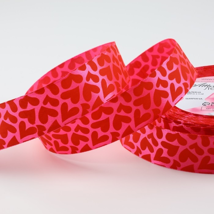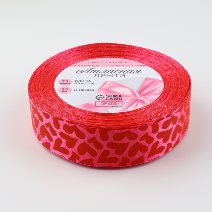 Лента атласная «Сердца», 25 мм × 23 ± 1 м, цвет розовый №190