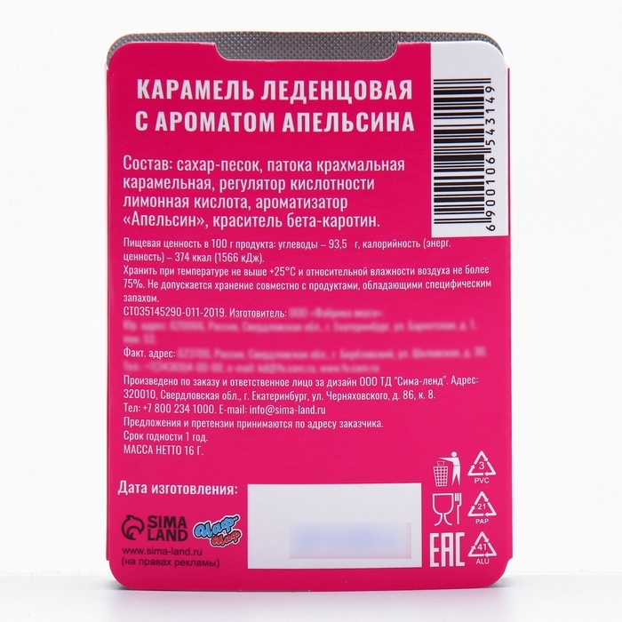 Леденцы "С Новым 2025 Годом!" со вкусом апельсина, 16 г