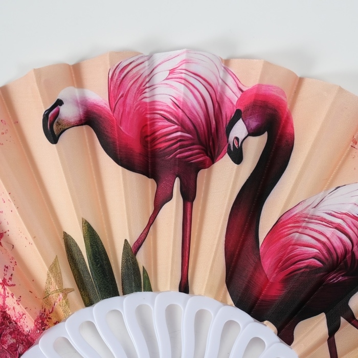 Веер пластик, текстиль "Розовый фламинго" МИКС 23 см