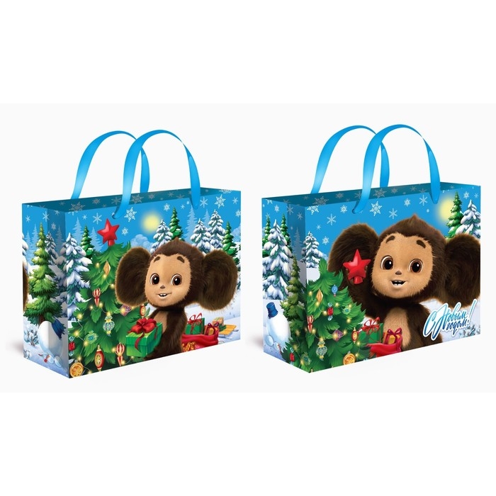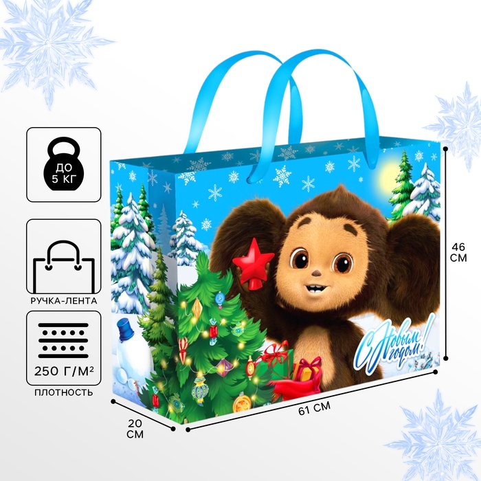 Новый год. Пакет подарочный, 61х46х20 см, упаковка, Чебурашка