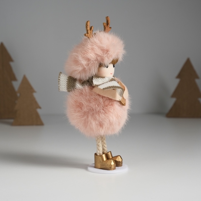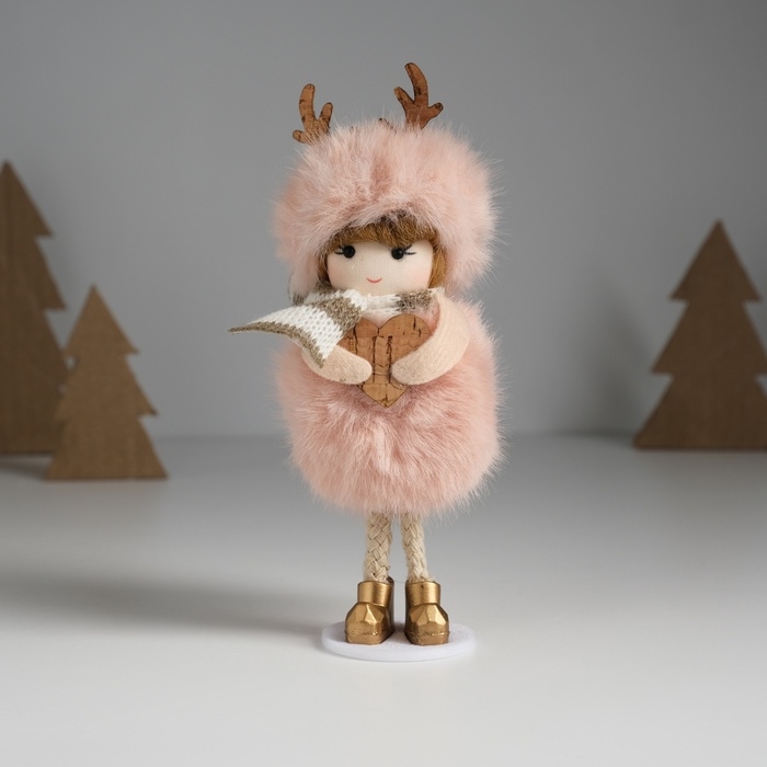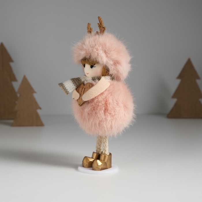 Кукла интерьерная "Девочка в розовой шубке и шапке, с сердечком" 6х6х15 см