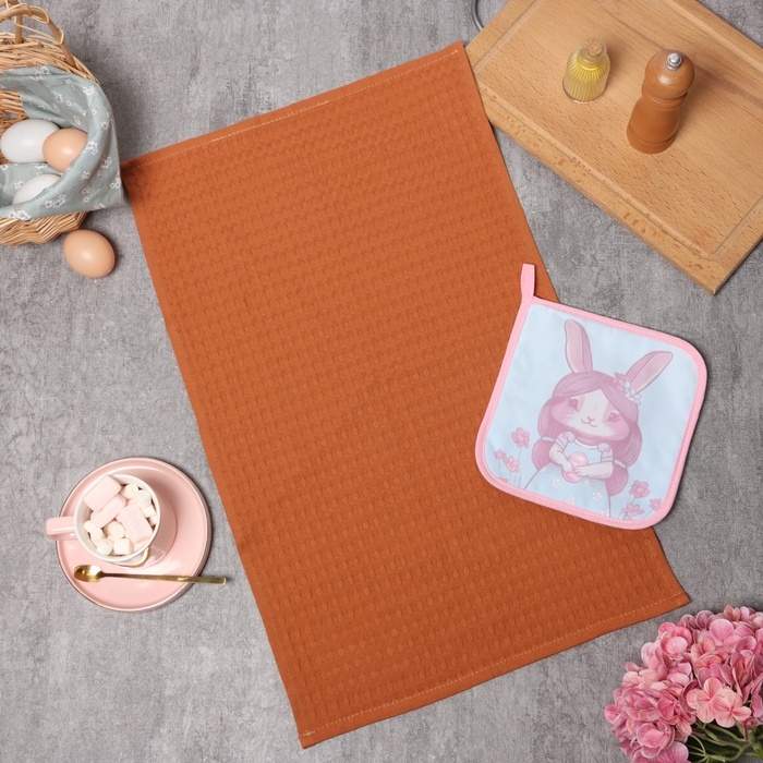 Набор кухонный Вright day прихватка 19х19см, полотенце вафля 35х60см