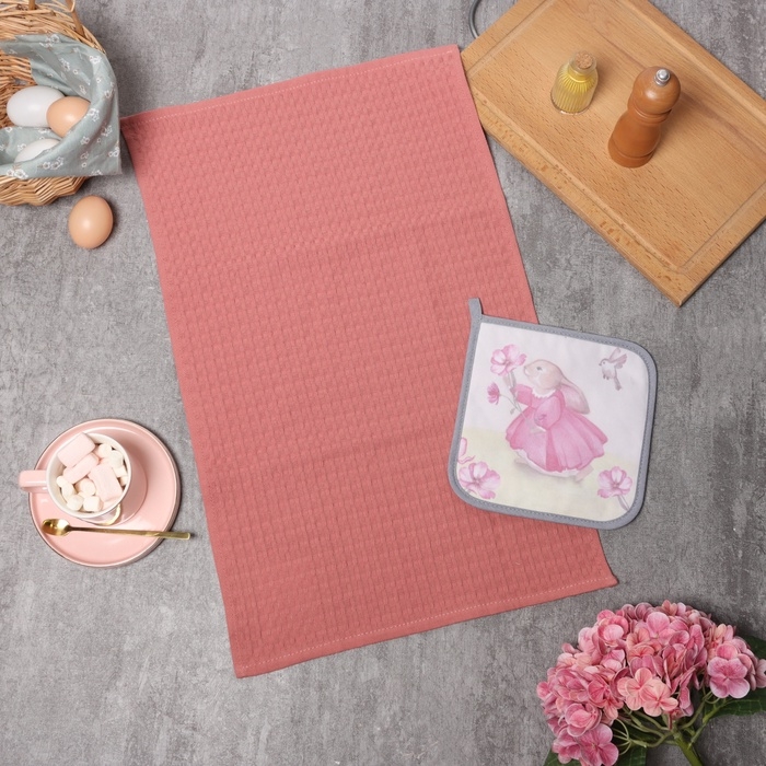 Набор кухонный Кролик прихватка 19х19см, полотенце вафля 35х60см