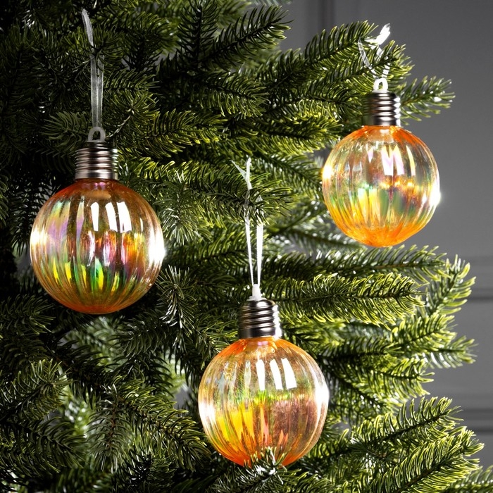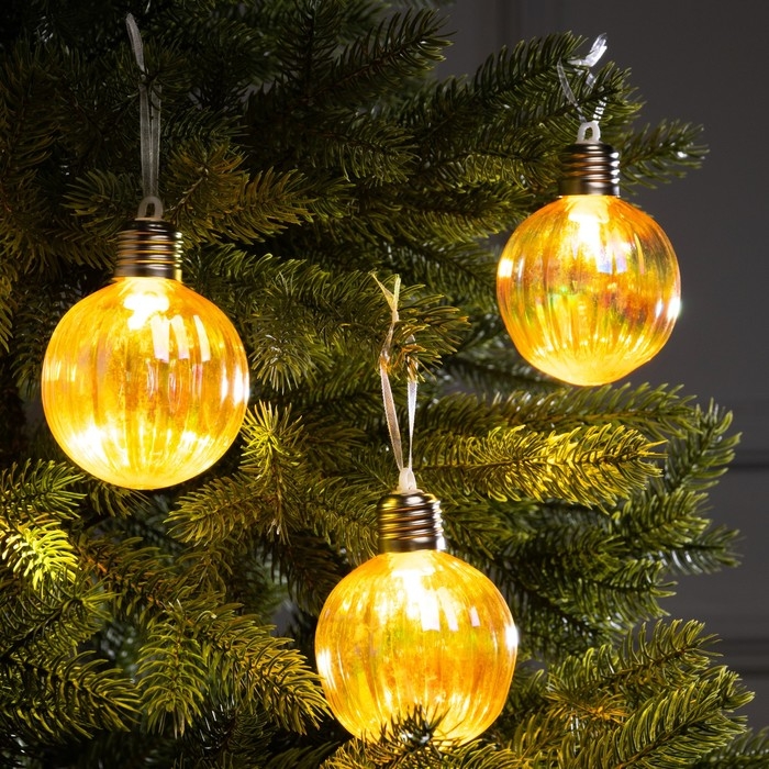 Набор елочных шаров "Золотистые грани", d=7 см, 3 LED, 3 шт, батарейки AG13x9 (нет в комплекте), свечение тёплое белое