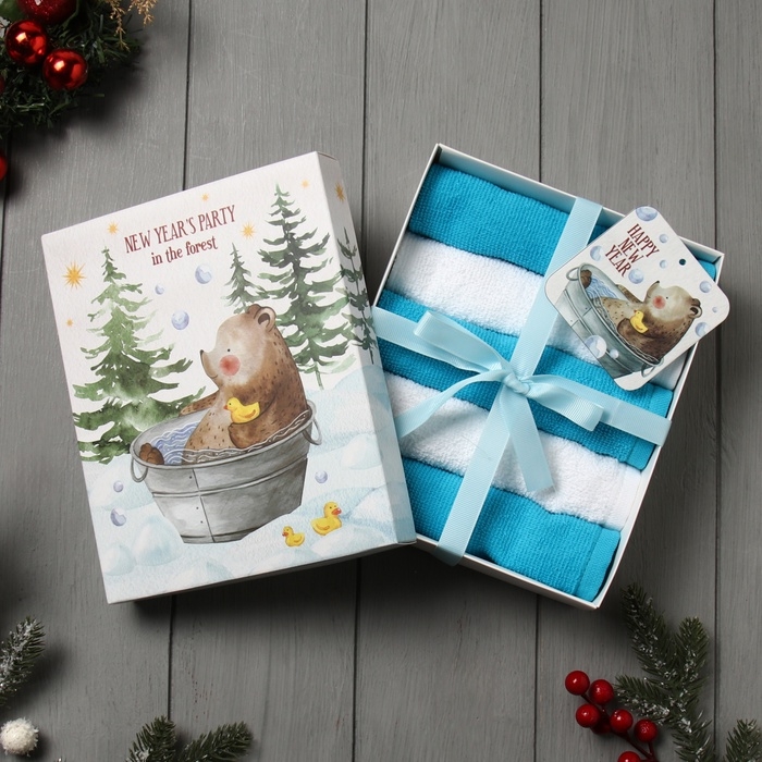 Набор махровых полотенец Этель "Мишка в лесу" 30х30 см -5шт, 100% хл, 340гр/м2