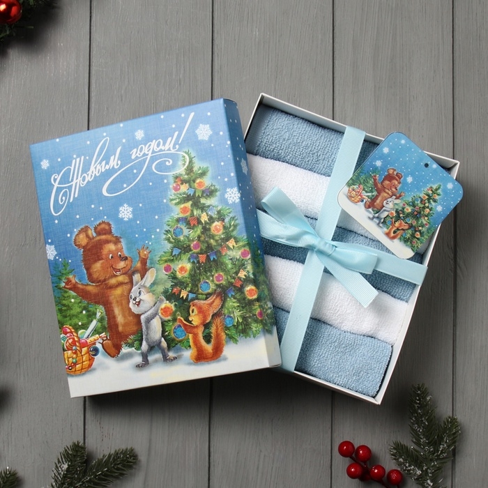 Набор махровых полотенец Этель "Новогодняя открытка" 30х30 см -5шт, 100% хл, 340гр/м2