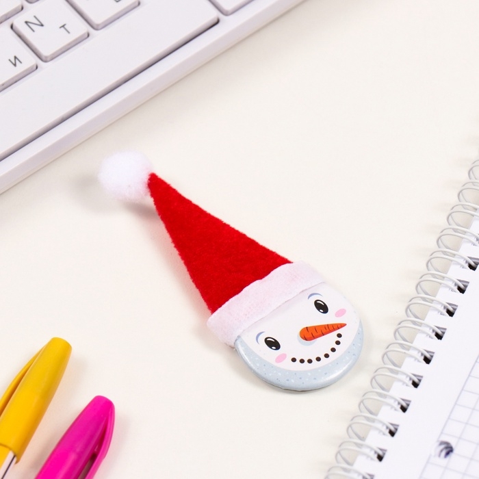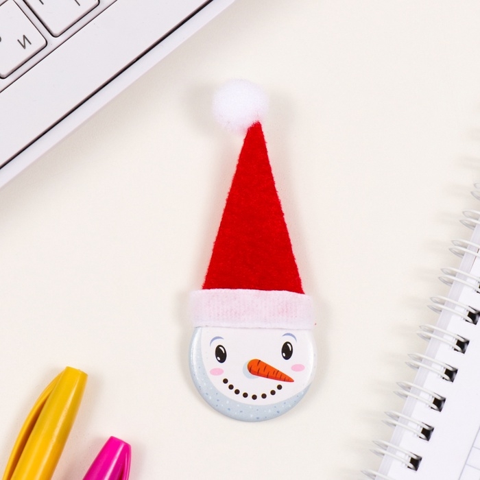 Значок закатной с колпаком d=35 мм "Снеговик" 6,5х11 см