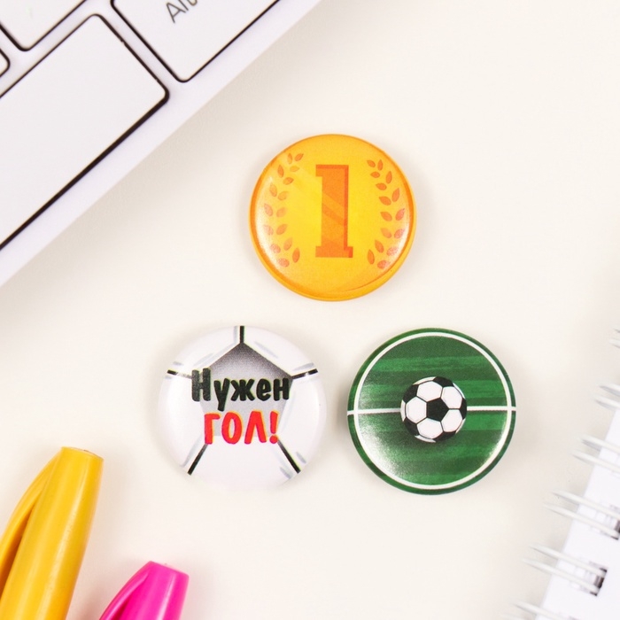 Значки закатные набор 3 шт d=25 мм "Футбол" 7х7 см
