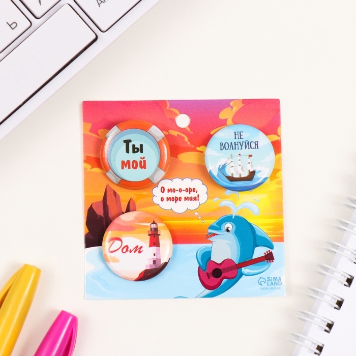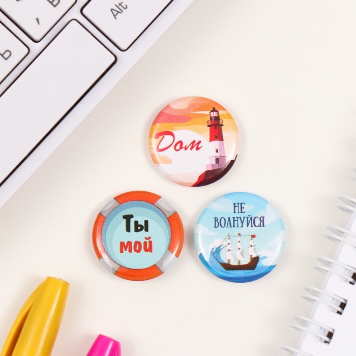 Значки закатные набор 3 шт d=25 мм "Море" 7х7 см