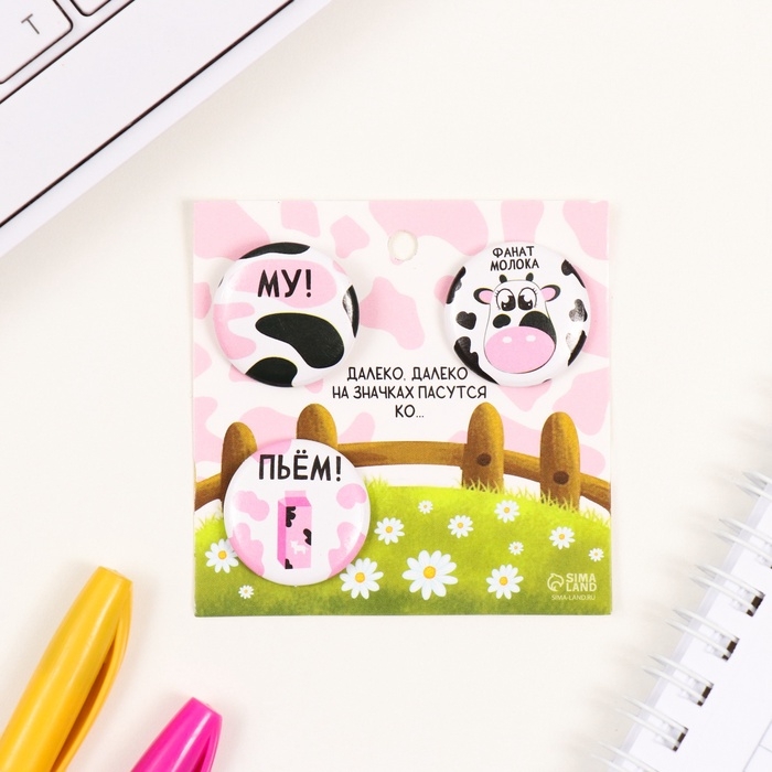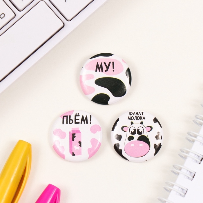 Значки закатные набор 3 шт d=25 мм "Молоко" 7х7 см