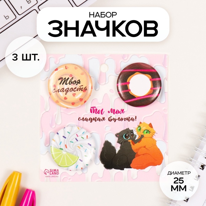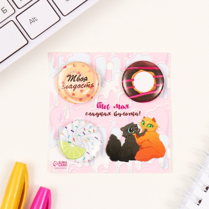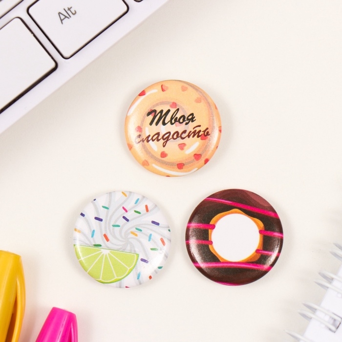 Значки закатные набор 3 шт d=25 мм "Сладости" 7х7 см