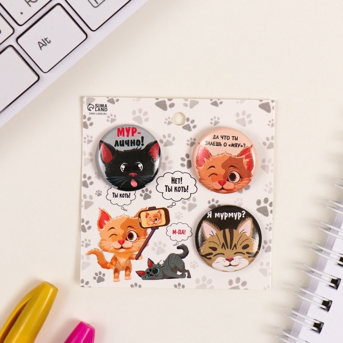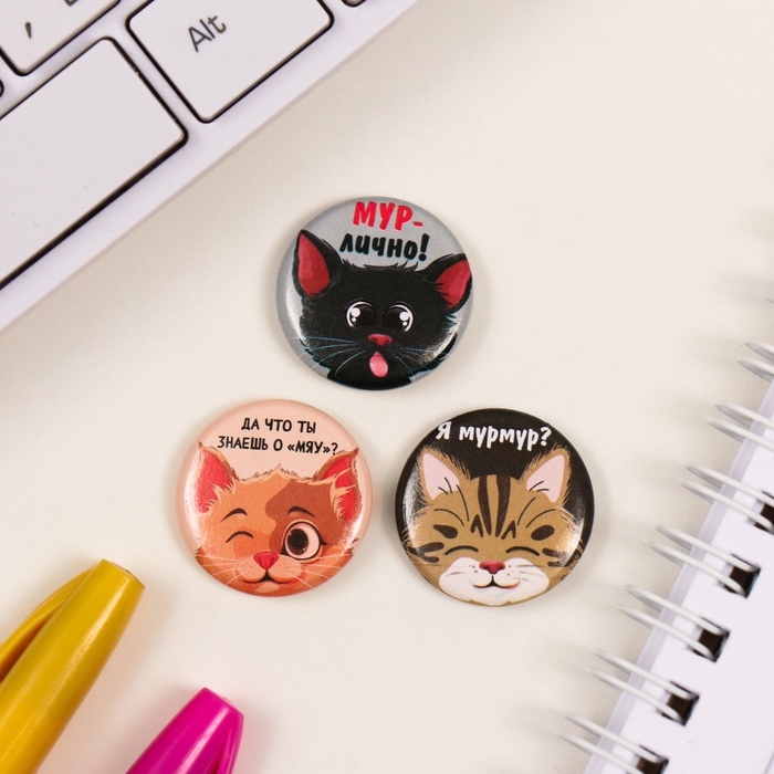 Значки закатные набор 3 шт d=25 мм "Котята" 7х7 см