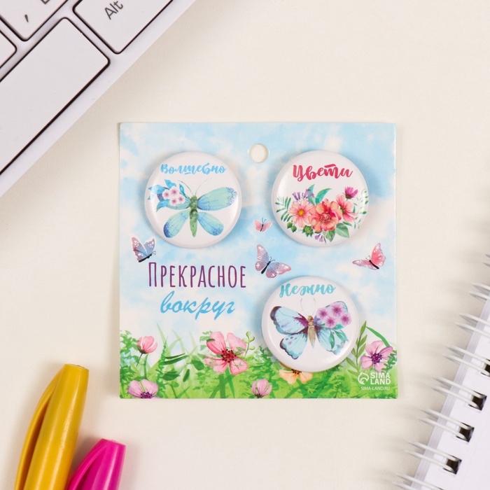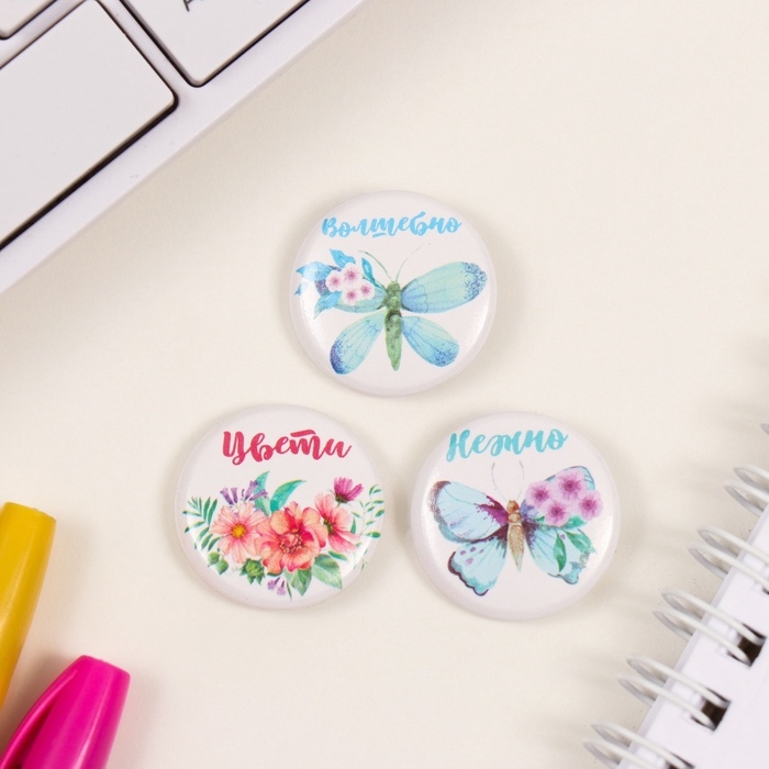 Значки закатные набор 3 шт d=25 мм "Бабочки" 7х7 см