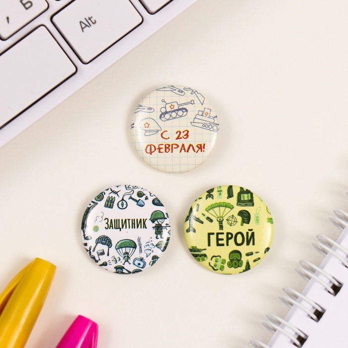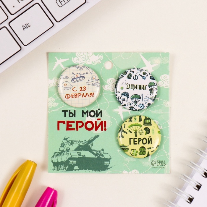 Значки закатные набор 3 шт d=25 мм "Герой" 7х7 см