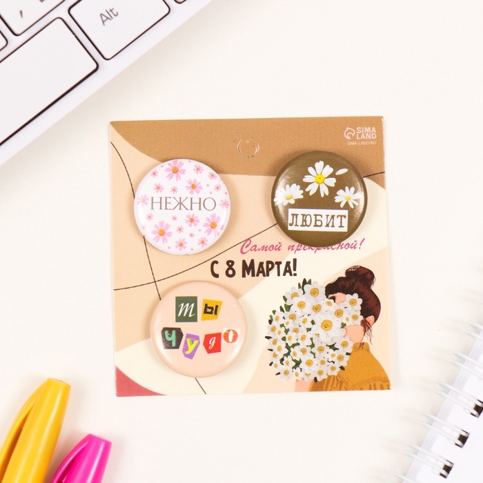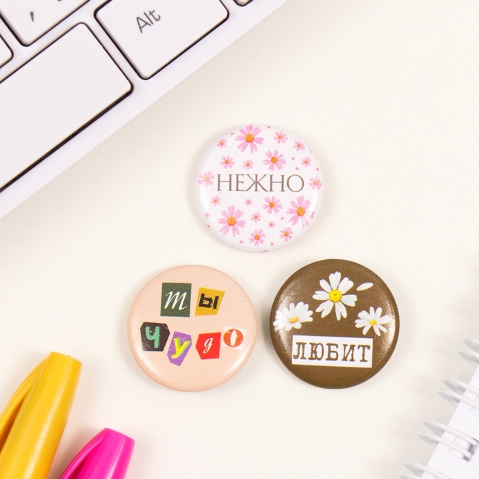Значки закатные набор 3 шт d=25 мм "Любит" 7х7 см