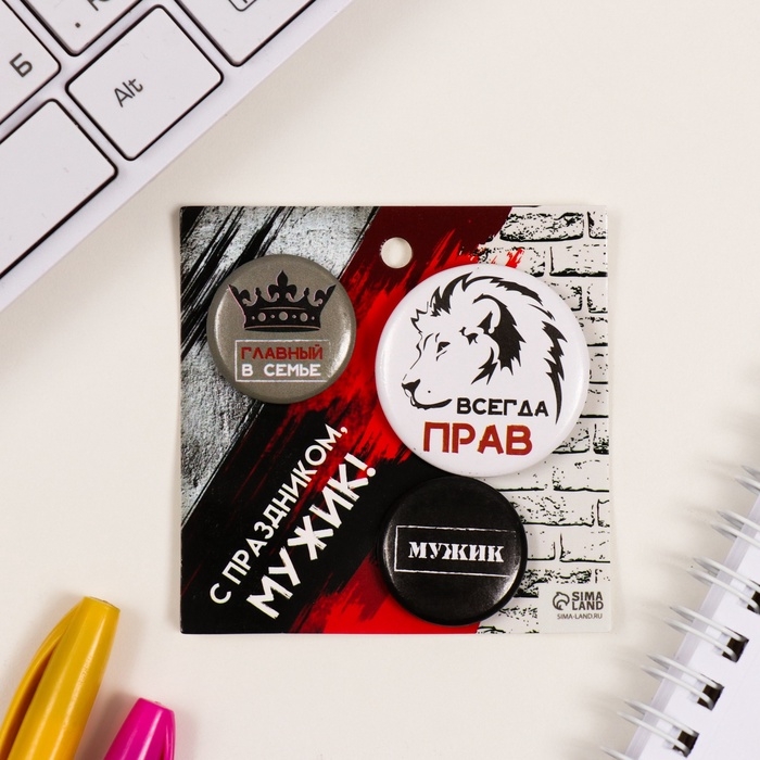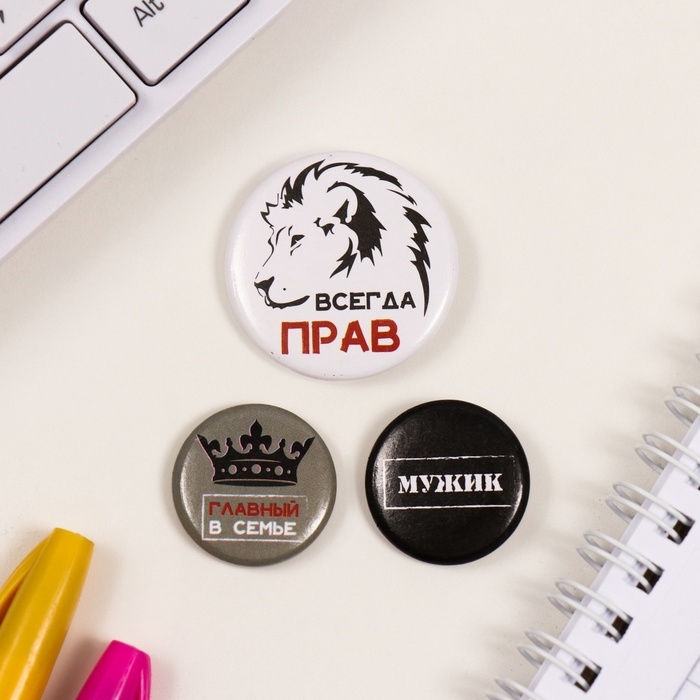 Значки закатные набор 3 шт d=25 мм d=35 мм "Всегда прав" 7х7 см