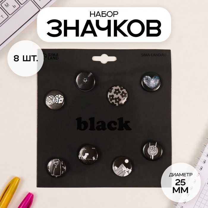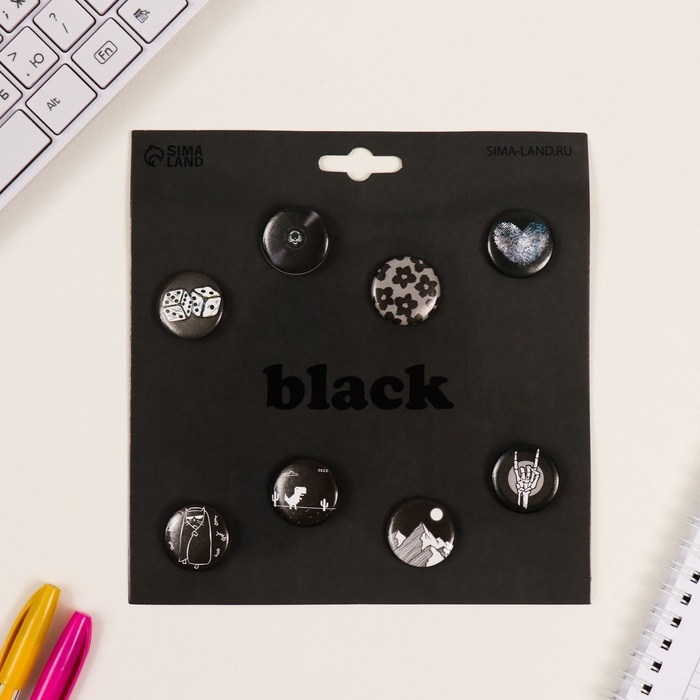 Значки закатные набор 8 шт d=25 мм "Чёрные" 16,5х17 см