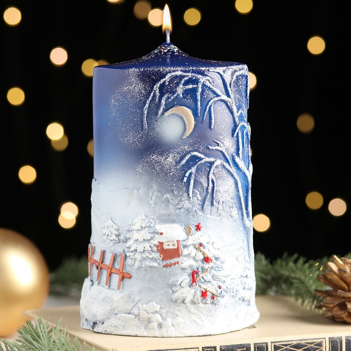 Свеча - цилиндр "Новогодняя", большая, 7х10х16 см