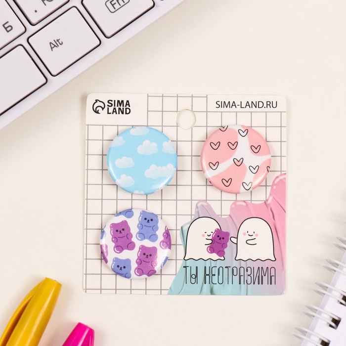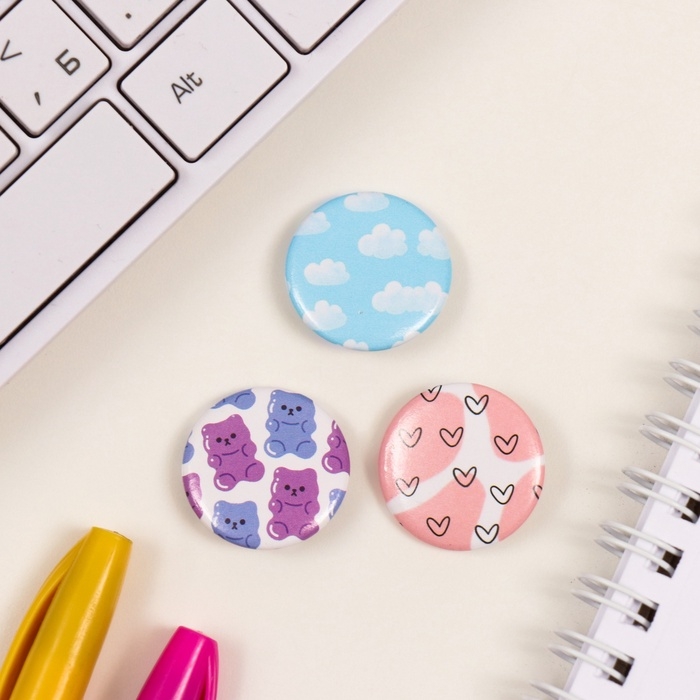 Значки закатные набор 3 шт d=25 мм "Мимимишность" 7х7 см