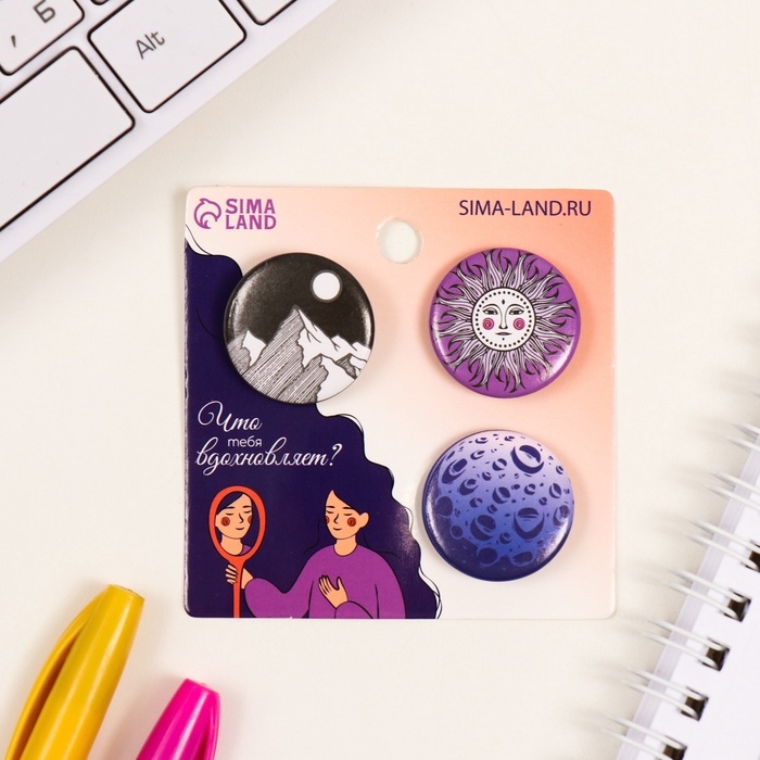 Значки закатные набор 3 шт d=25 мм "Моя вселенная" 7х7 см