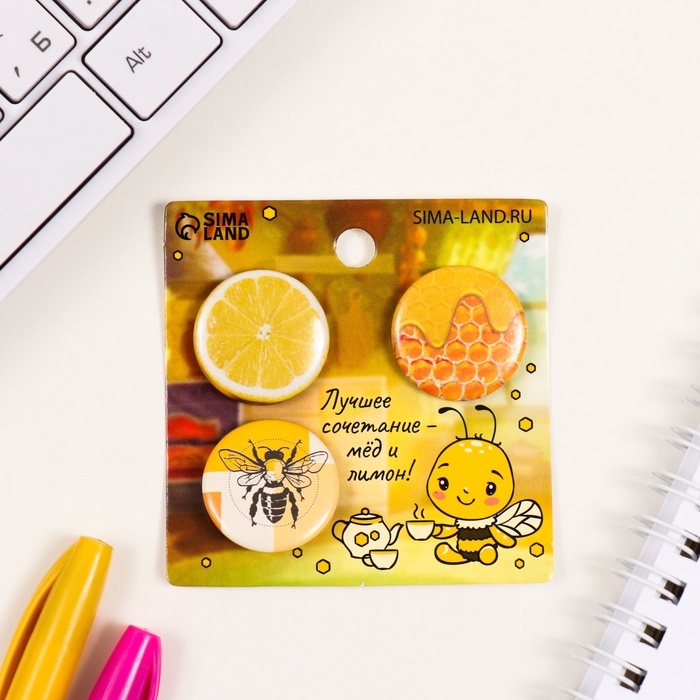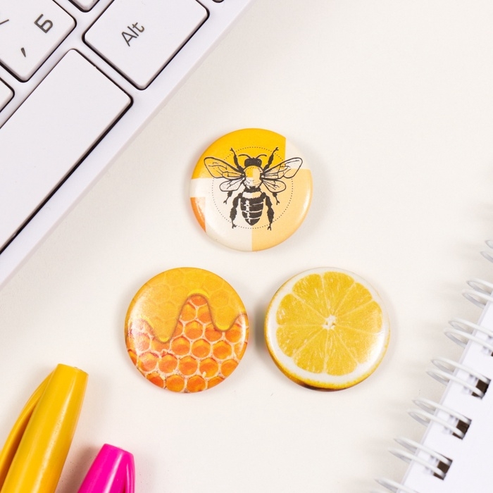 Значки закатные набор 3 шт d=25 мм "Мёд и лимоны" 7х7 см