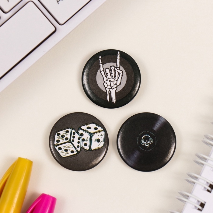 Значки закатные набор 3 шт d=25 мм "Скелет" 7х7 см