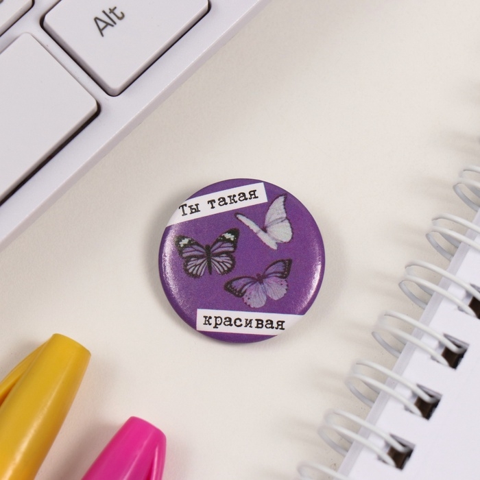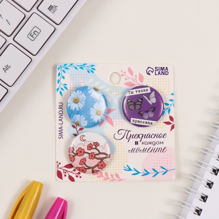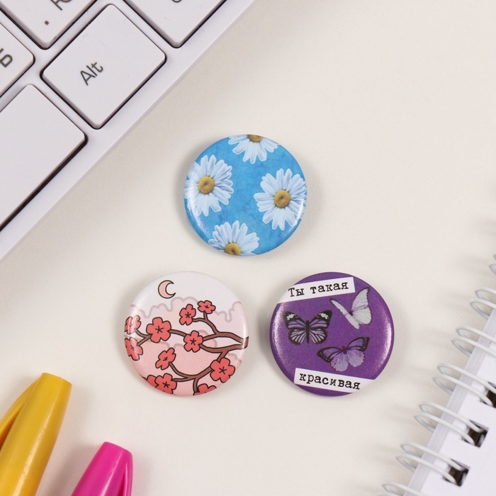 Значки закатные набор 3 шт d=25 мм "Ты такая красивая" 7х7 см