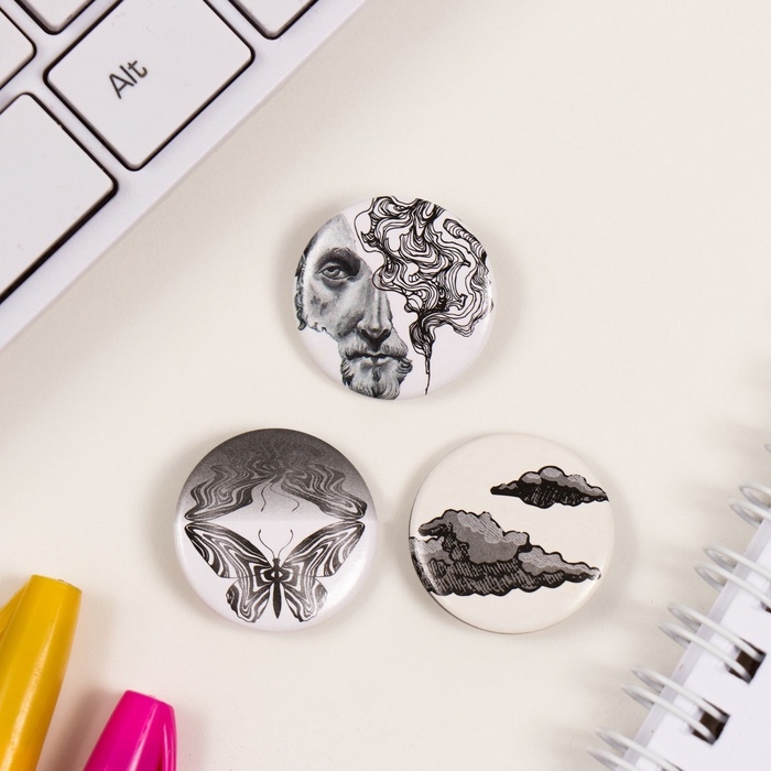 Значки закатные набор 3 шт d=25 мм "Античность и графика" 7х7 см
