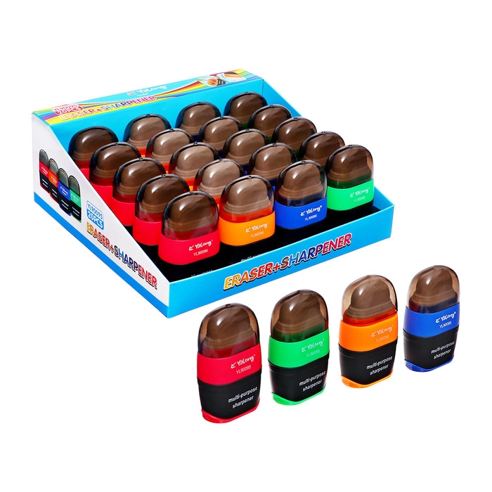 Точилка с контейнером двойная Универсальная с ластиком МИКС