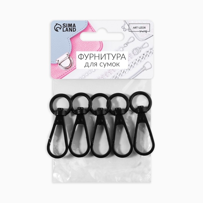 Карабин металлический, 45 × 15 мм / 10 × 2,2 мм, 5 шт, цвет чёрный