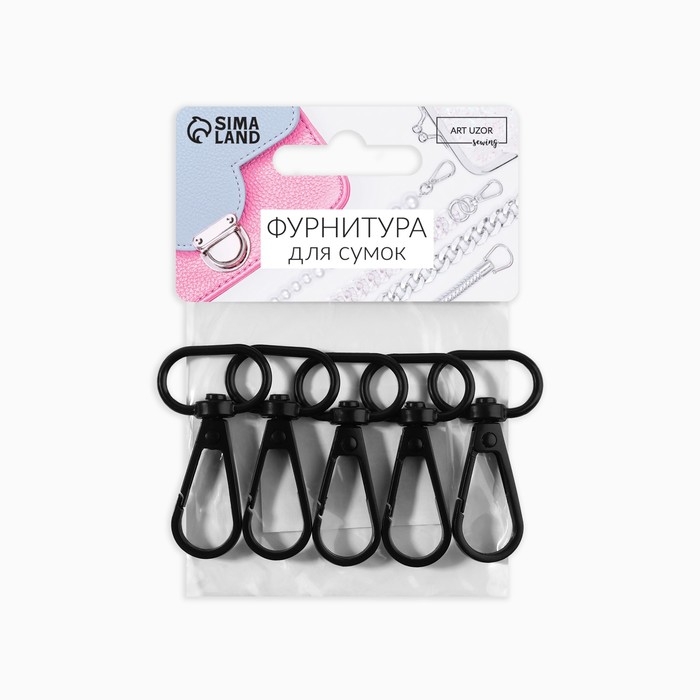 Карабин металлический, 45 × 25 мм / 20 × 3 мм, 5 шт, цвет чёрный
