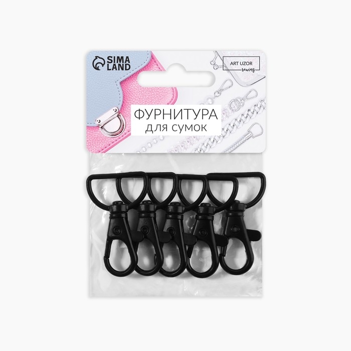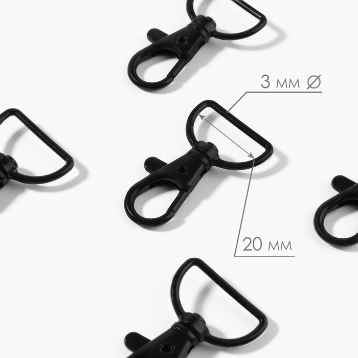Карабин металлический, 40 × 25 мм / 20 × 3 мм, 5 шт, цвет чёрный