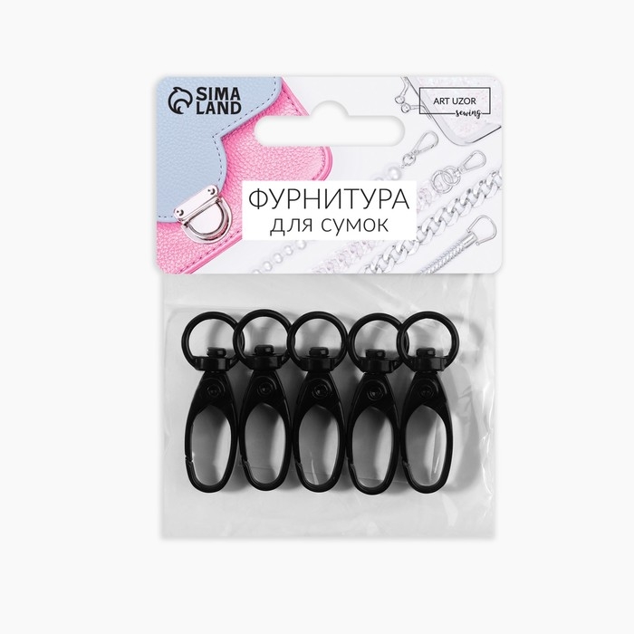 Карабин металлический, 38 × 12 мм / 10 × 1 мм, 5 шт, цвет чёрный