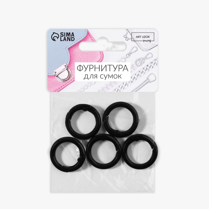 Кольцо-карабин, d = 16/24 мм, толщина - 4 мм, 5 шт, цвет чёрный