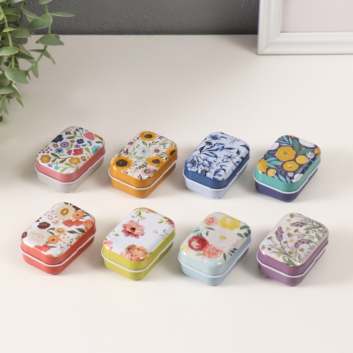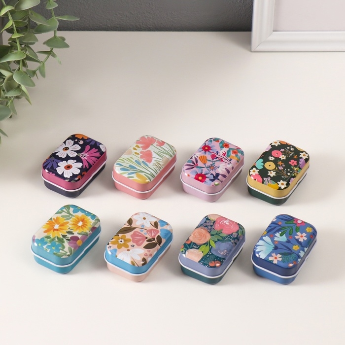 Шкатулка металл прямоугольная "Цветочки" МИКС 5,8х4,2х2.6 см