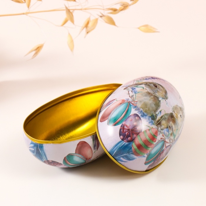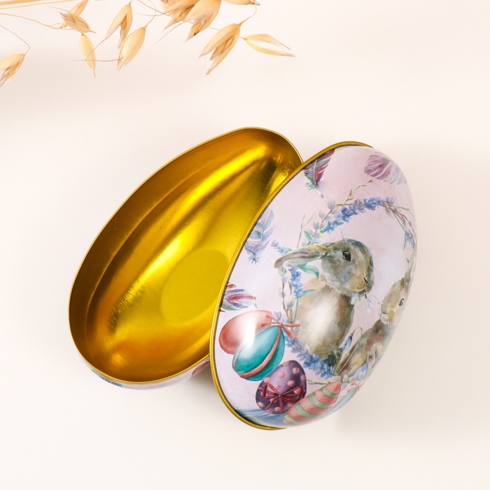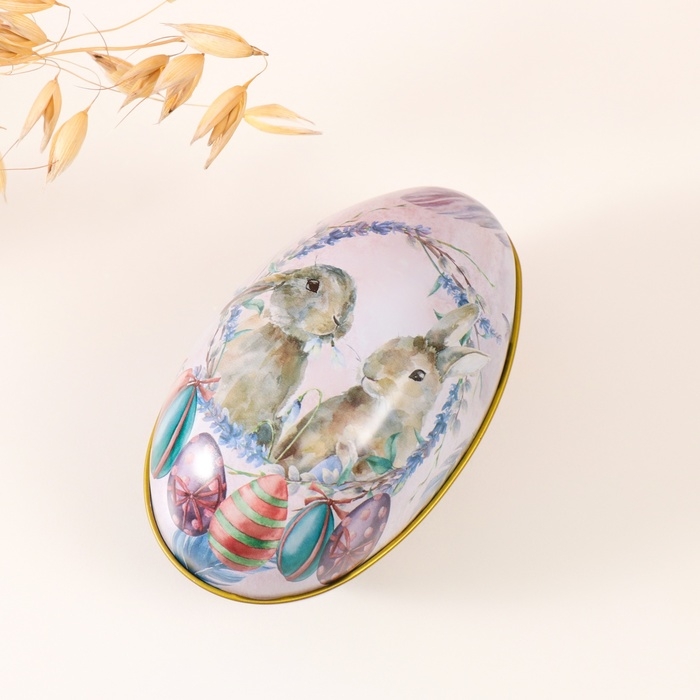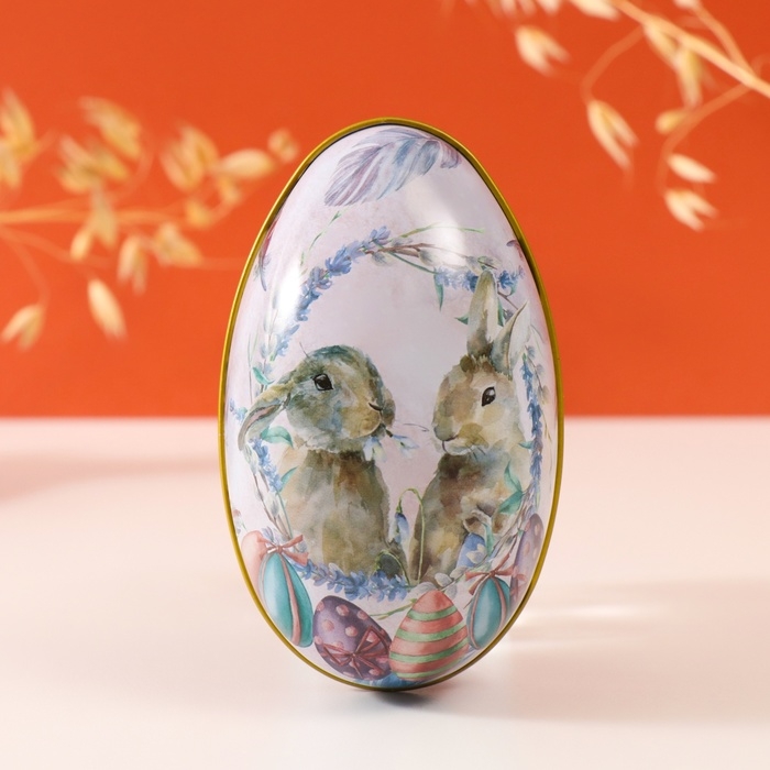 Шкатулка металл яйцо "Два пасхальных зайчика" 7х6,5х11 см